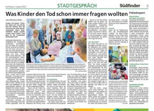 Presse Südfinder August 2025 Südkurier Pfullendorf Juli 2025 Impressionen Die Fotos entstanden während einer Projektwoche „Hospiz macht Schule“ in der Dorfschule in Herdwangen im Juli 2025.